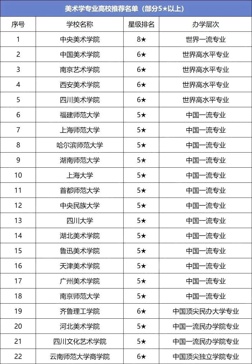 (数据来源于校友会2020中国美术学类一流专业排名)