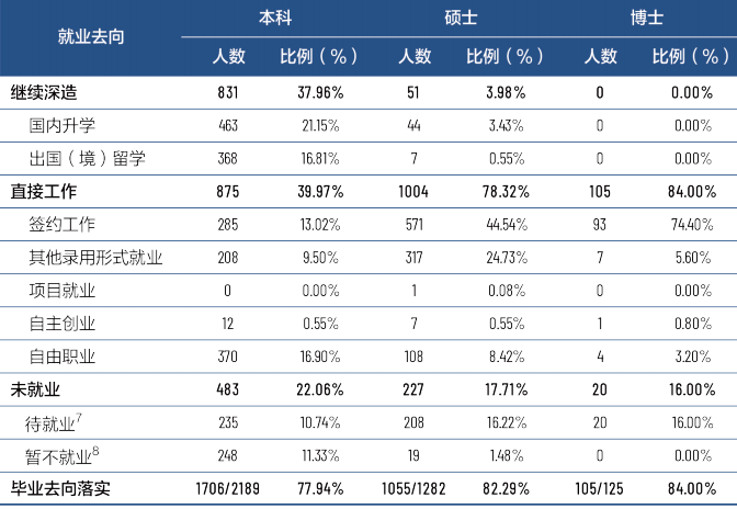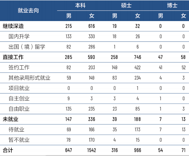 其中,男生直接工作的比例高于女生,女生继续深造的比例高于男生。