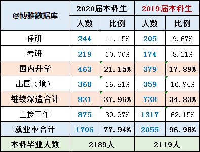 有 463 人国内升学,其中,244 人保研,219 人考研;298 人进入本校攻读研究生,165人进入外校攻读研究生。