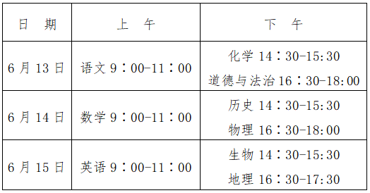 语文120分、数学120分、英语120分(含听力30分)、物理70分、化学60分、生物60分、道德与法治60分、历史60分、地理60分、信息技术10分。地理、生物学科可申请补考或重考1次,重考以最高成绩计入总成绩。